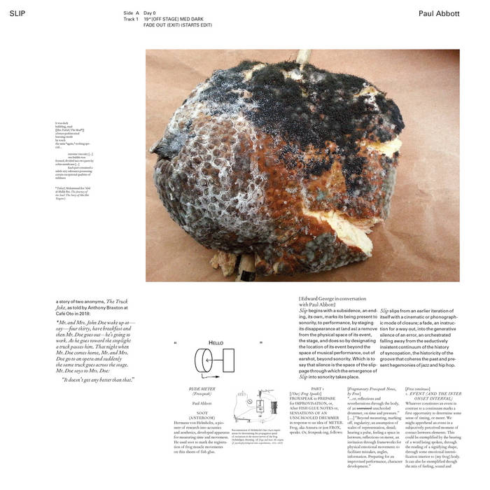 SLIP is Paul Abbott’s response to his 3 day residency at OTO in 2023. It’s a continued exploration of the acoustic-digital hybrid drum setup Abbott has been developing for some time, which involves drum kit and synthetic sounds combined closely—through an entanglement of limbs and cables—in an intimate but strange relationship with each other.